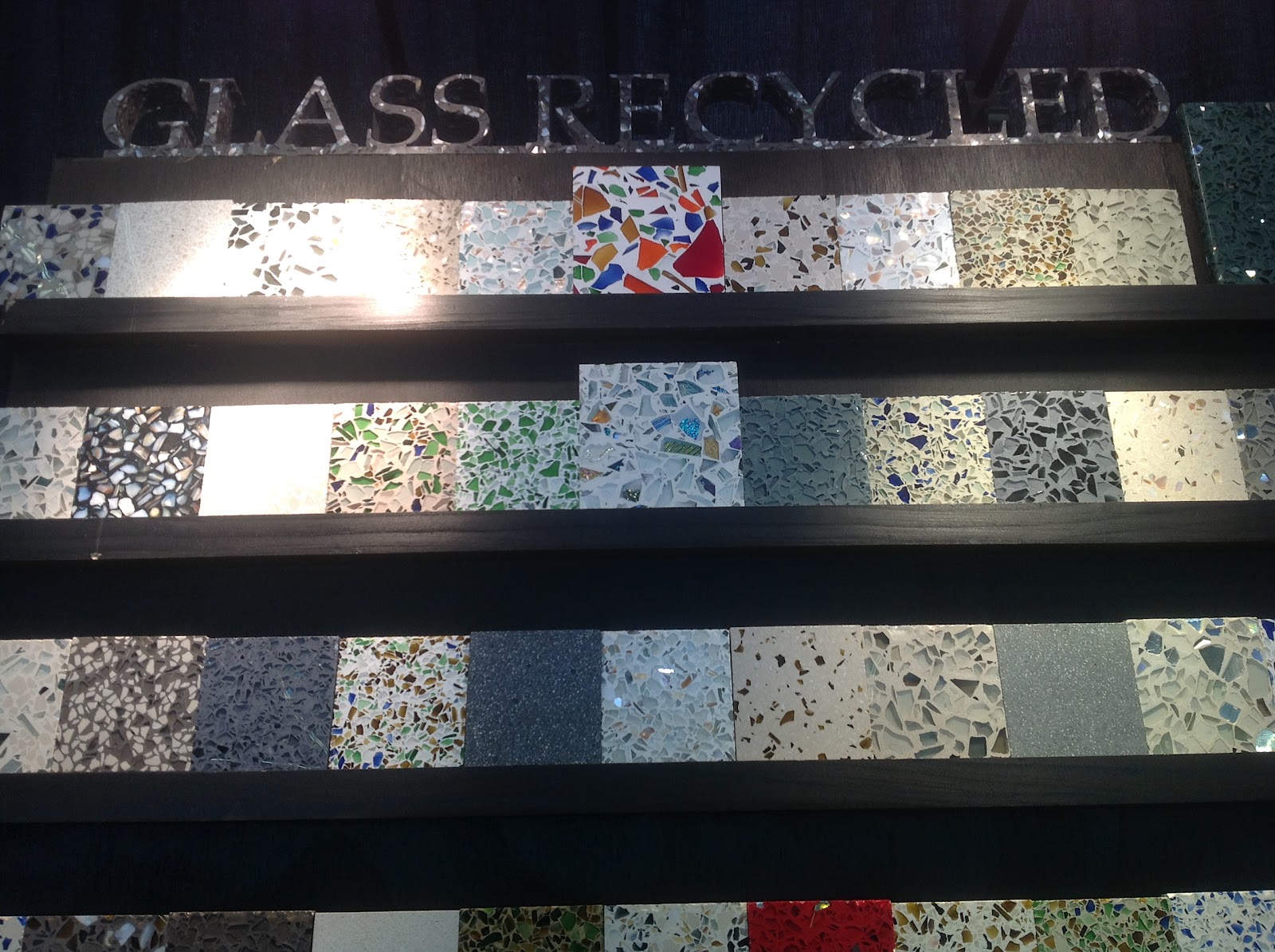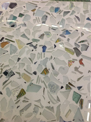 Crushed glass is used in terrazzo fashion to create almost limitless designs and colors.